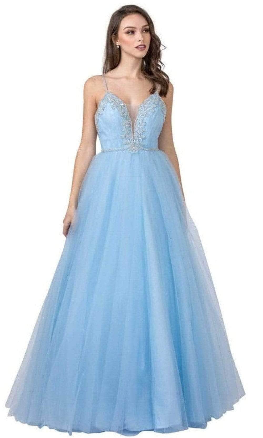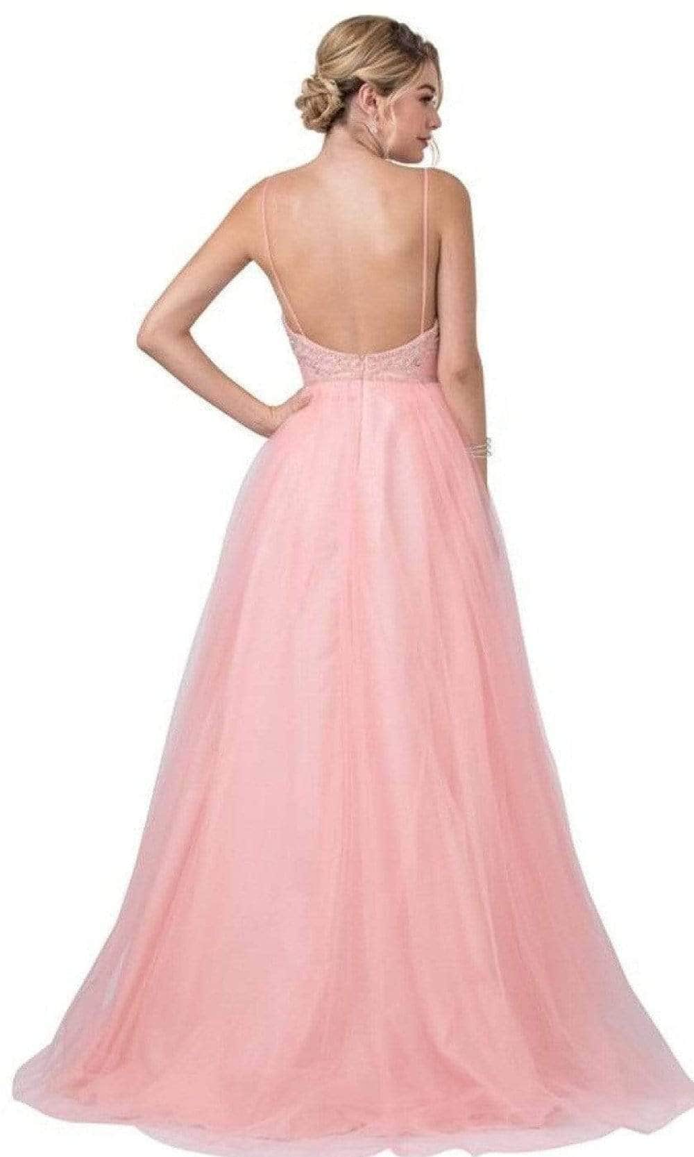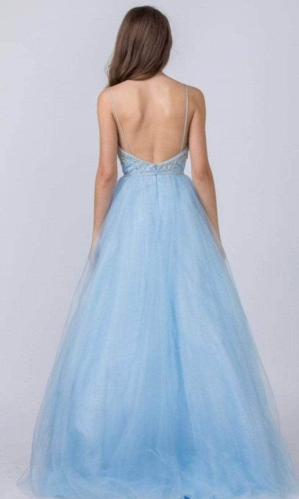 Leave a trail of admirers as you glisten in beauty in this Trevi Collection L2379 masterpiece. This dress highlights a plunging V-neckline supported by spaghetti straps in a beaded bodice. The skirt reveals an A-Line silhouette while the back shows an open back with back zipper closure. Fascinate the crowd wearing this exceptional Trevi Collection creation.