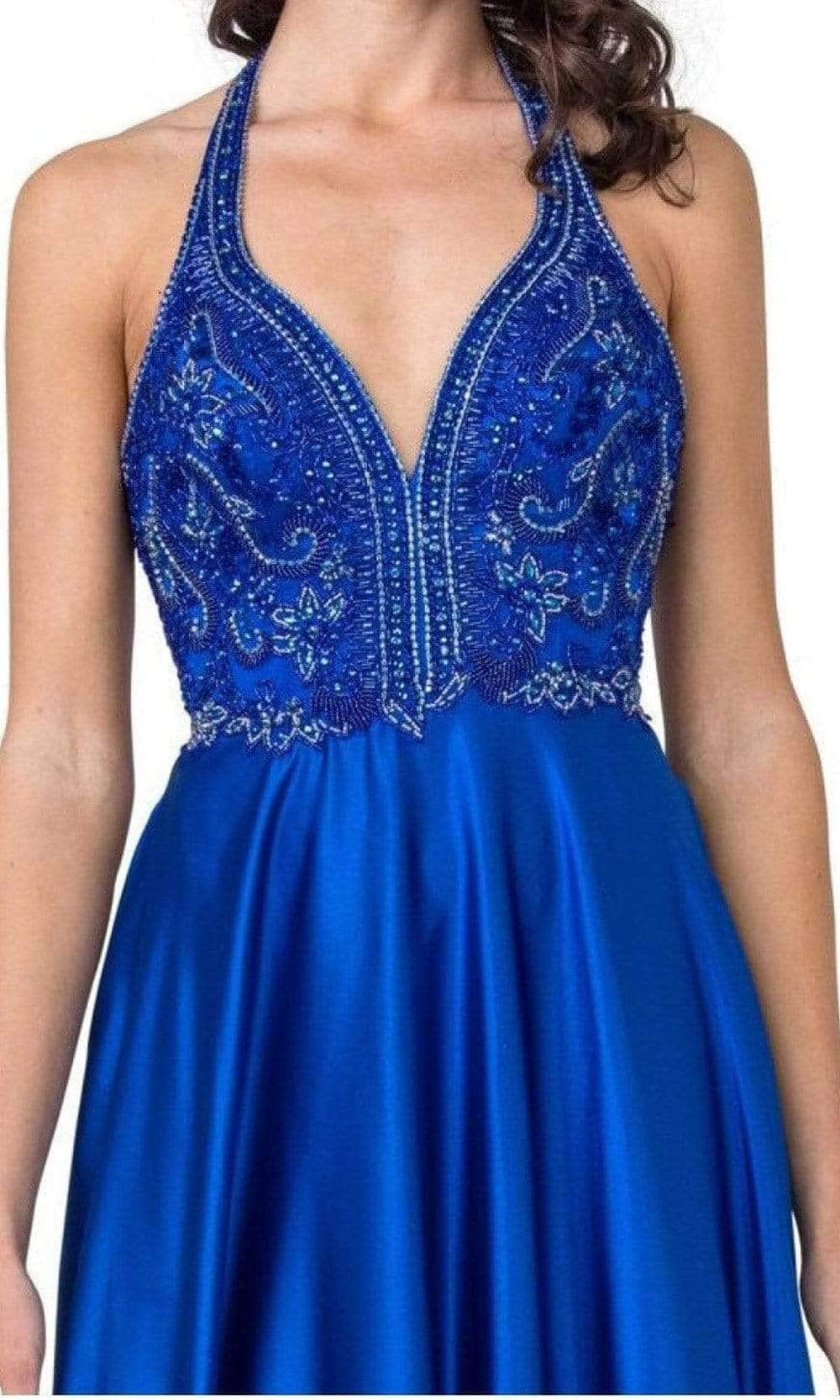 Trevi Collection - L2405 Ornate Plunging Halter Satin Dress