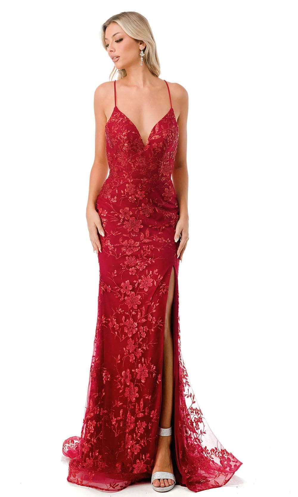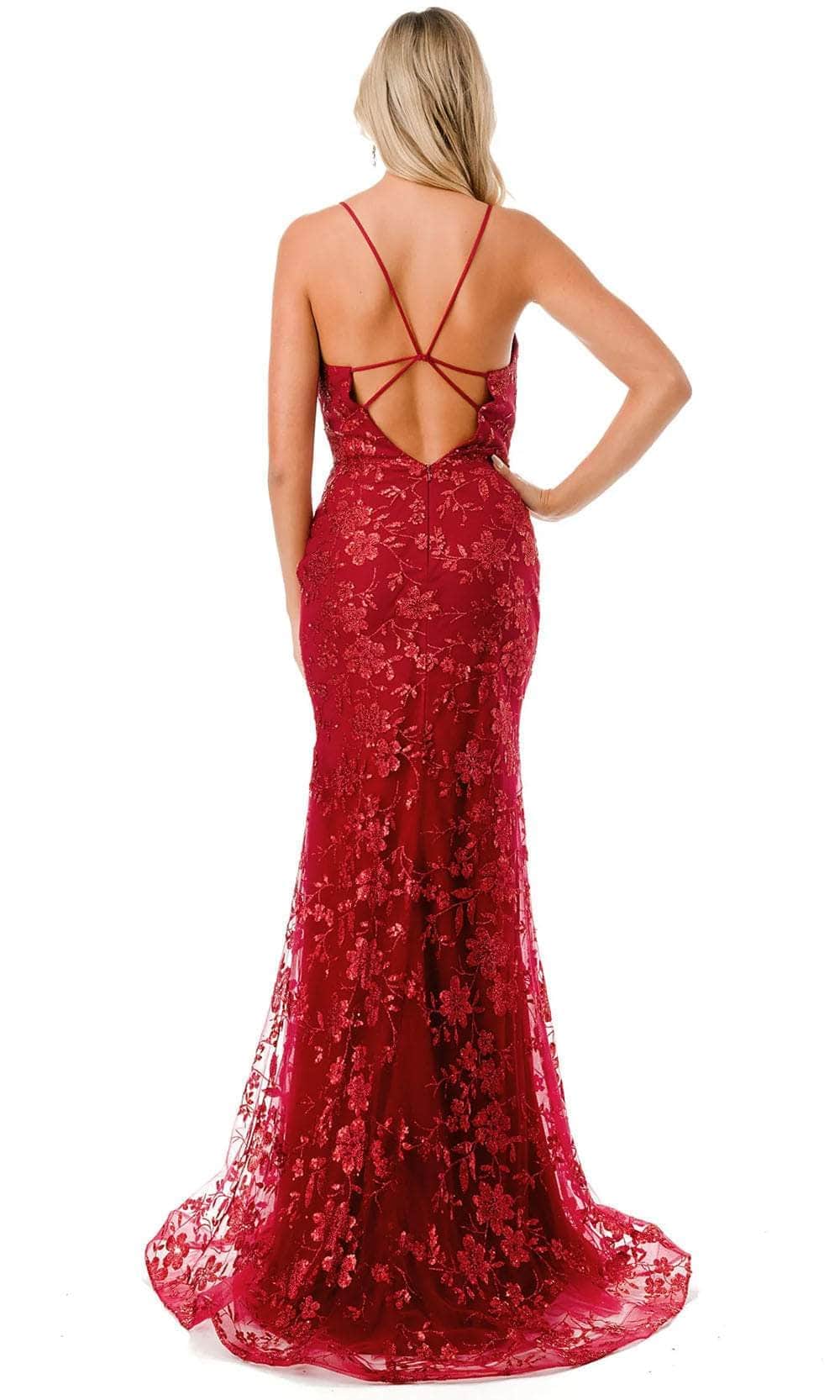 Have all eyes on you as you embrace beauty and style in this Trevi Collection L2755T creation. Exceptionally showing off floral elegance with its captivating glitter print design, this lovely ensemble features delicate spaghetti straps and a v-neckline. Exude feminine grace with an open back accentuated with a strappy design and a zipper closure, the mermaid skirt gracefully sculpts the female form as if flaunts a high slit that accentuates your legs with confidence. This ensemble completes with a sweep train. Be the center of everyone’s attention while donning this Trevi Collection L2755T masterpiece. Models are wearing the Burgundy and Hunter Green colors.