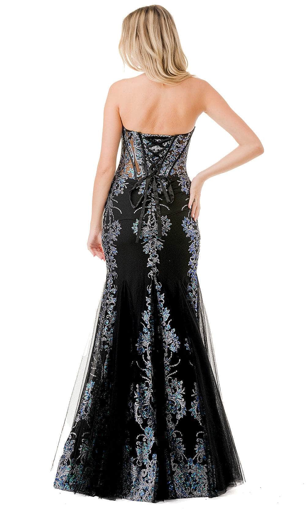 Make memories that will last a lifetime while wearing this alluring Trevi Collection L2869W, a breathtaking masterpiece adorned with intricate embroideries. This gown features a strapless corset bodice beautifully embellished with delicate details, complemented by a flattering sweetheart neckline. The lace-up tie at the back ensures a secure and adjustable fit, while the floor-length skirt flows gracefully in a captivating mermaid silhouette. Perfect for making a dramatic entrance, this Trevi Collection L2869W combines exquisite craftsmanship with timeless elegance, promising to captivate admirers at any special occasion. Model is wearing Black color.