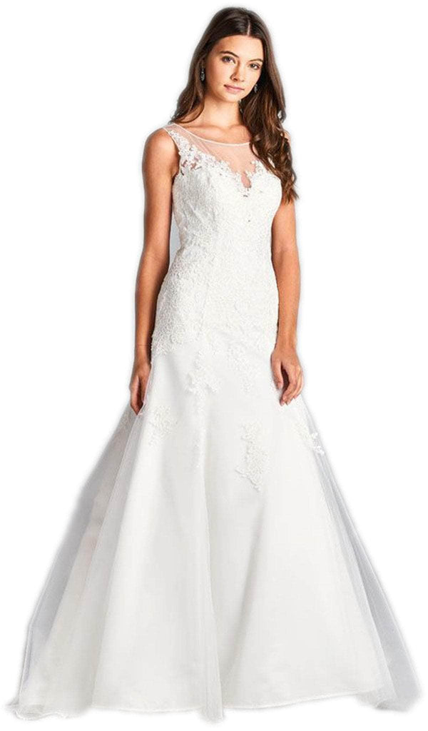You'll look fantastic in photos with a beautiful gown from Trevi Collection L1904. This sleeveless gown is designed with an illusion bateau neckline and sweetheart bodice embellished with lace appliques. The sheer back is accented with a trail of covered buttons while the A-line skirt runs in full length hem with sweep train. This Trevi Collection wedding dress joins traditional elements with sexy style for a jaw-dropping look on your wedding day! Find more White Dresses for Women.