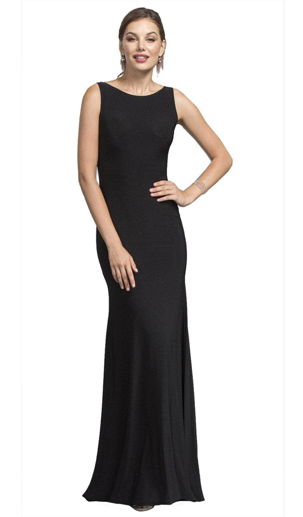 Create an elegant statement wearing this long evening dress by Trevi Collection D121. A classy sleeveless long black evening dress with bateau neckline and sheer back with contrasting floral embroidered accent. This sheath silhouette ensemble by Trevi Collection spells sophistication and classy style. A perfect choice for red carpet events and other formal occasion.