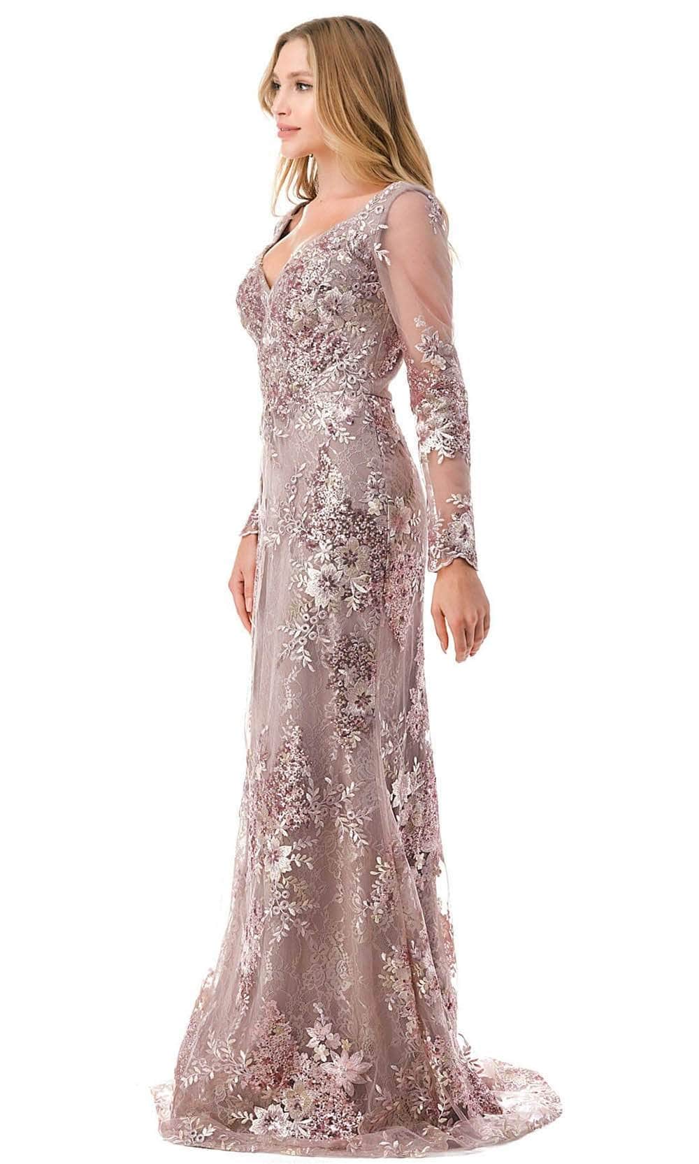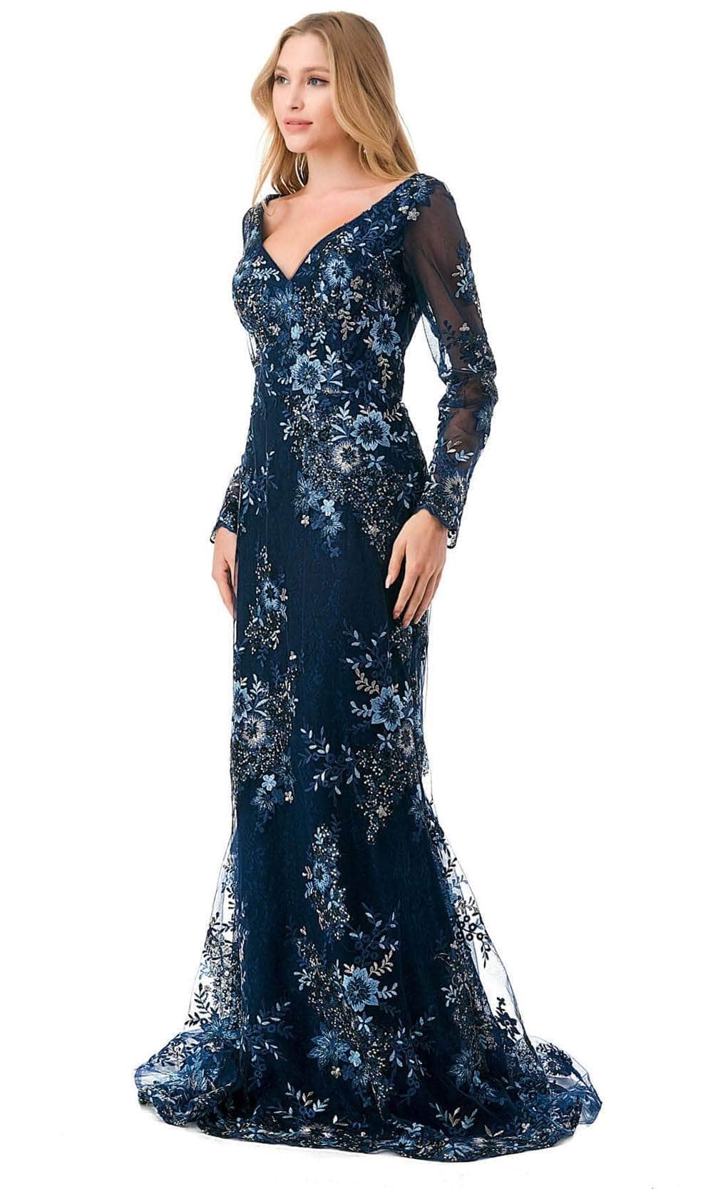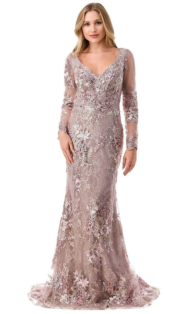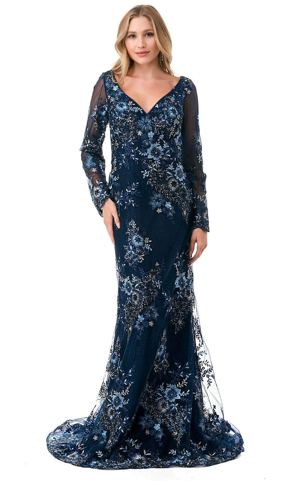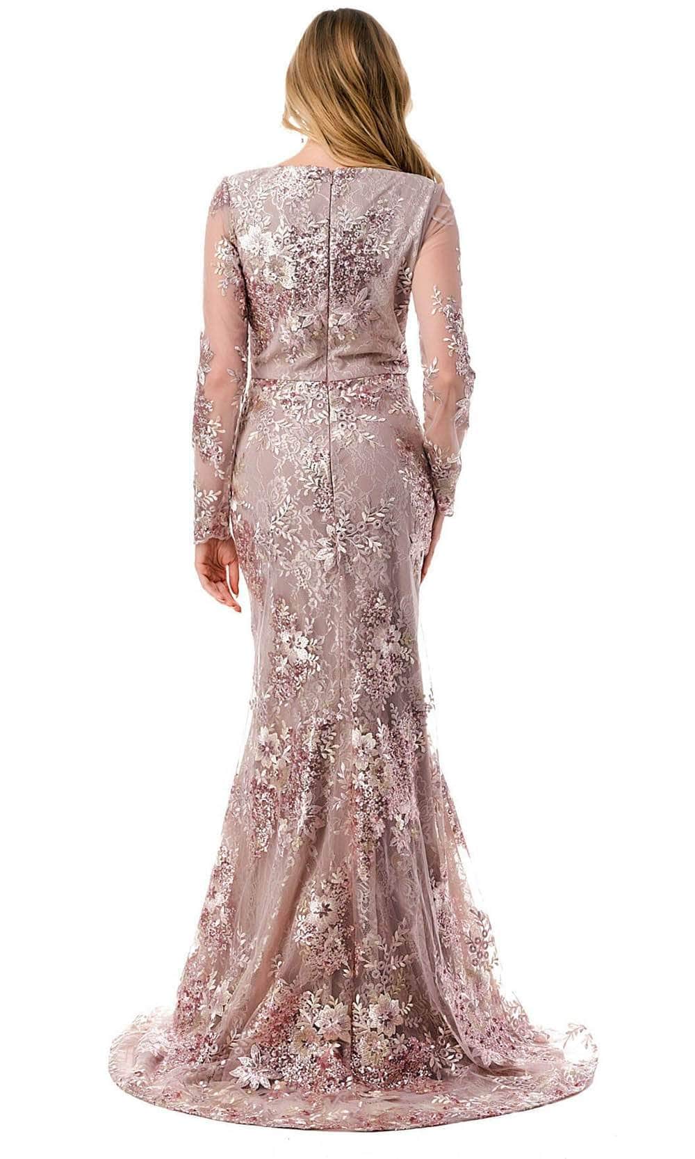 Experience the ultimate extravagance in this finely designed Trevi Collection M2768F creation. Exceptionally embellished with adornments in intricate beadwork and embroidery, this exquisite creation boasts illusion long sleeves and a v-neckline. Delicate floral lace appliques grace the entirety of the gown. The full back is designed with a zipper closure that ensures a secure and seamless fit. With a sweep train that trails behind you, this gown parades a mermaid silhouette. Make a statement and leave a lasting impression in the mesmerizing Trevi Collection M2768F masterpiece. Models are wearing the Mauve and Navy colors.