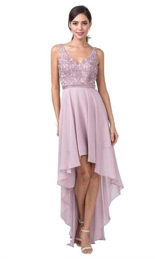 Turn heads instantly when you wear this Trevi Collection S2330 dress. This high-low dress highlights a V-neckline in a sleeveless embroidered and beaded bodice. Revealing an A-Line silhouette, this also shows a scoop back with back zipper closure to finish the look. Trevi Collection creation is a charming choice for your next special occasion.