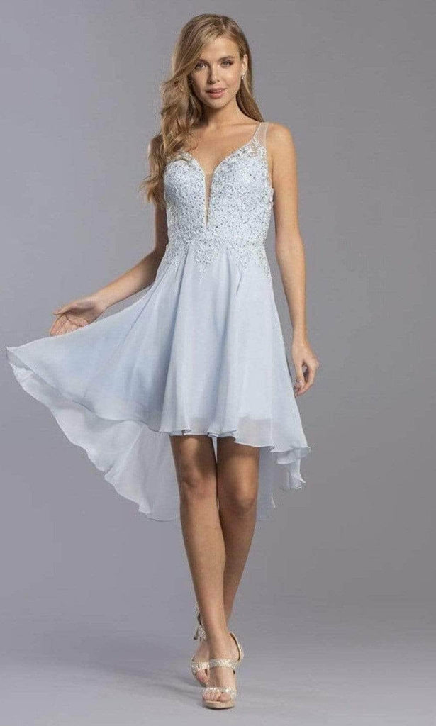 Trevi Collection - S2336 V Neck Embroidered High Low Dress