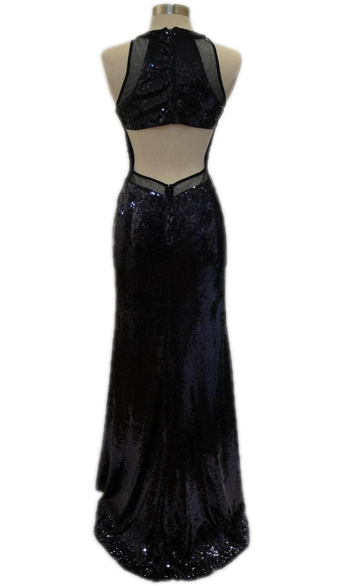 Steal the spotlight in this sparkling dress from Trevi Collection L1992. Brandishes in a sleeveless, halter neckline with sheer panels and lavish sequins. The look flaunts an open back while the sheath skirt runs in full length hem with a sweep train finish. Earn your place in the limelight in this ahh-inspiring evening gown by Trevi Collection.