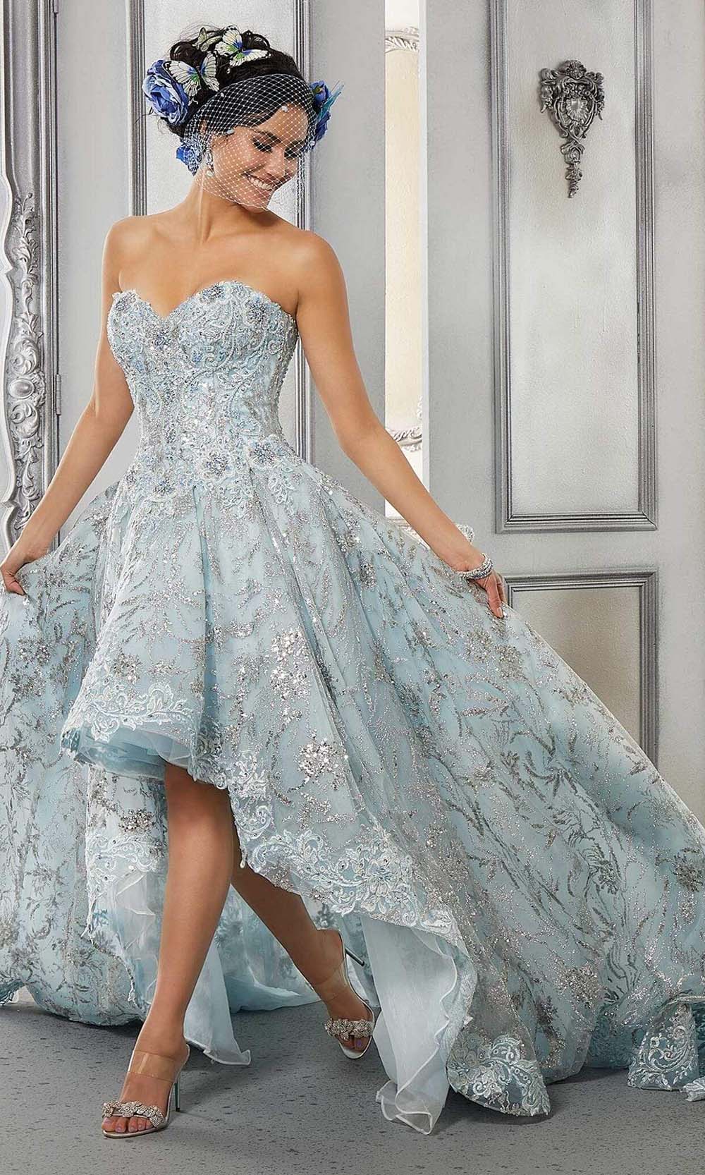 Get ready for everyone to stop and stare when you show up in this Vizcaya by Mori Lee 34055 ball gown. This gown displays a sweetheart neckline supported by a detachable stole in a sleeveless, appliqued, beaded, glittery and laced bodice. Having a hi-low layer of skirt this dress also shows a mid-open back with lace up back closure completing the look. This Vizcaya by Mori Lee is sure to make you the darling of the party! More colors available. Please call our sales team at 855-700-4239.