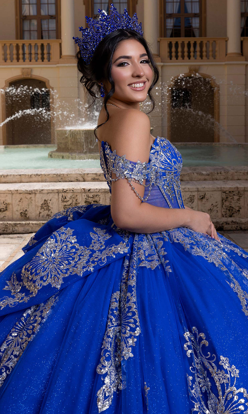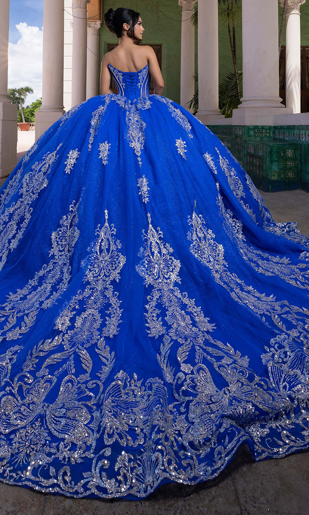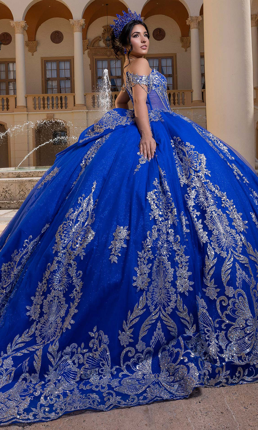 Make your celebration unforgettable with the dazzling Vizcaya by Mori Lee 4080021 masterpiece. This quinceanera gown begins with a strapless sweetheart neckline that perfectly frames the shoulders and collarbone. The structured corset bodice glimmers with crystal and sequin embroidery, sculpting a flawless fit that transitions into a dramatic full ballgown skirt. Enhanced with metallic accents, the gown moves with luminous grace and grandeur. Includes off-shoulder sleeves designed to detach, paired with a removable bow detail at the back. A striking piece for your special day, this Vizcaya by Mori Lee 4080021 design merges sophistication and timeless beauty. Model is wearing Regal Royal/Silver color.