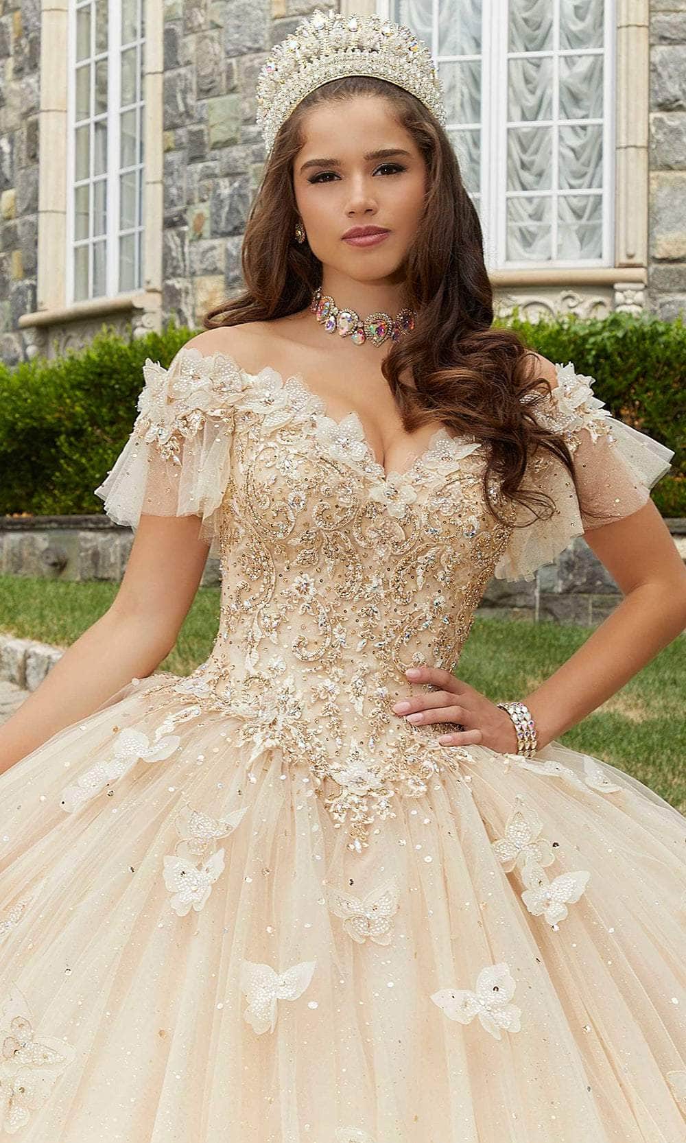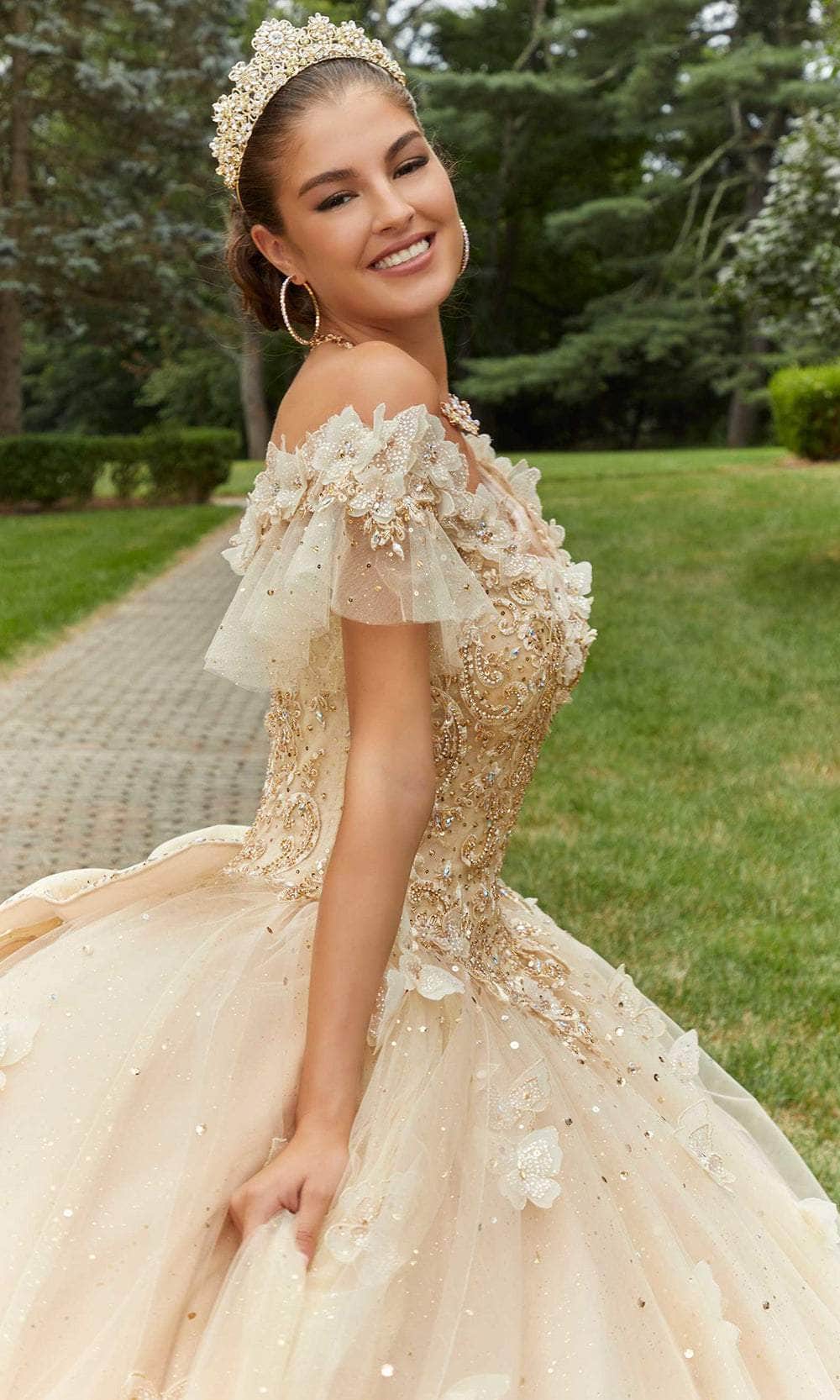 Vizcaya by Mori Lee 89404 - Butterfly Appliqued Off Shoulder Ballgown