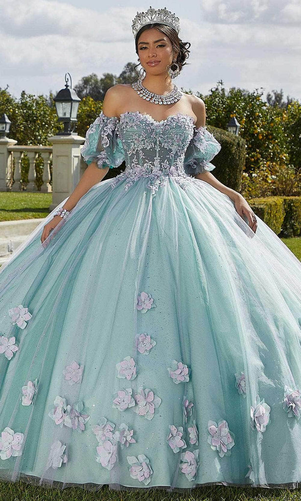 Channel your inner princess in this Vizcaya by Mori Lee 89421 masterpiece. This strapless gown creates an unforgettable impression thanks to its adornments such as 3D floral appliques, metallic embroidery, and crystal beads. It includes an illusion corset bodice with exposed boning that ensures ample support and a refined structure. The sweetheart neckline is paired with stylish detachable short puff sleeves and a daring open lace-up back. The skirt flows into a chapel train, sculpting a voluminous ballgown silhouette that is bound to captivate. Included is a matching stole that enhances the overall aesthetic. Flatter your standout features as you dazzle the crowd in this Vizcaya by Mori Lee 89421 gown. Models are wearing Blueberry Pop, Lavender Moss, and Sangria/Blush colors.