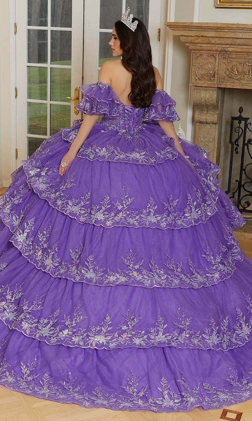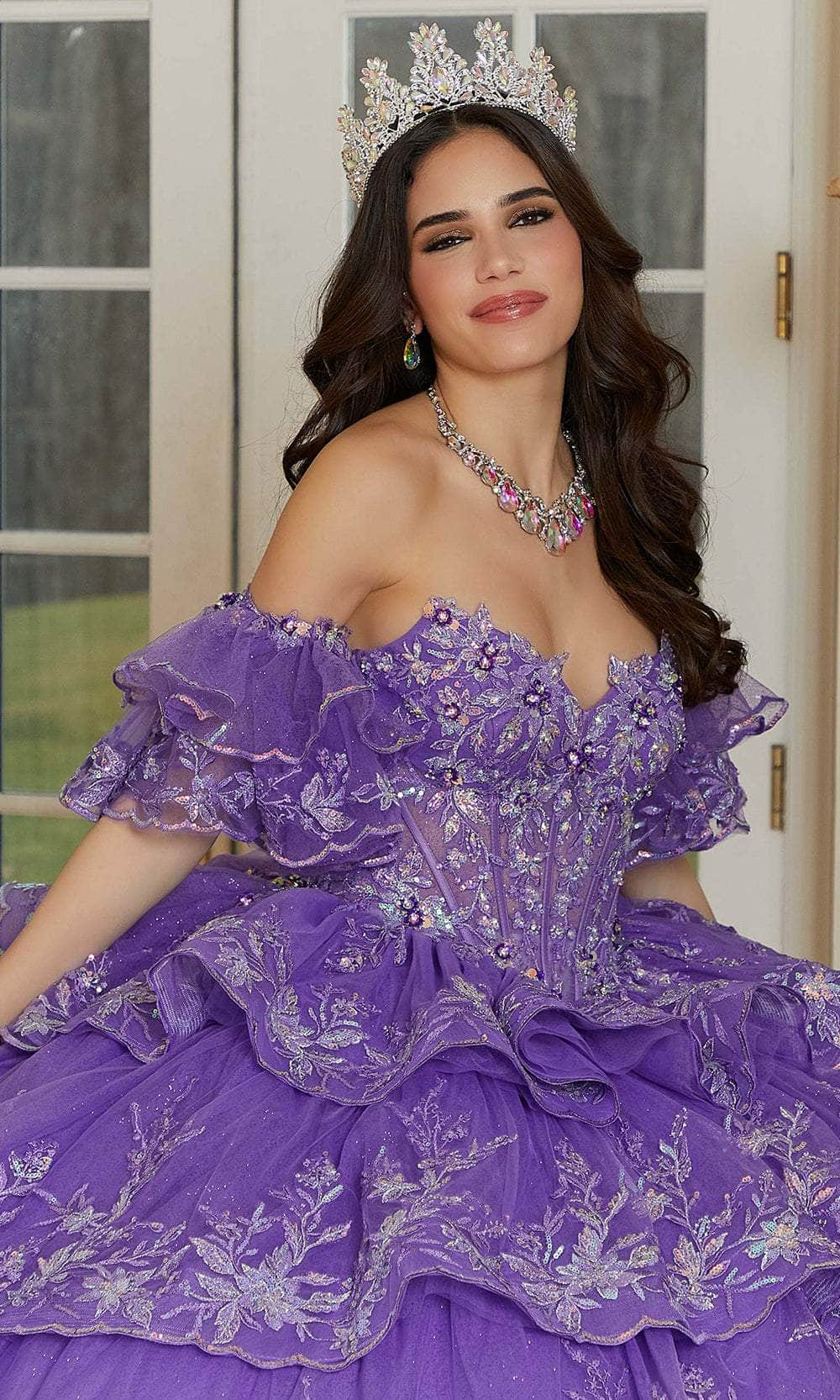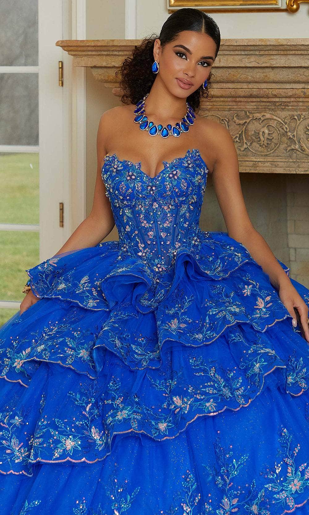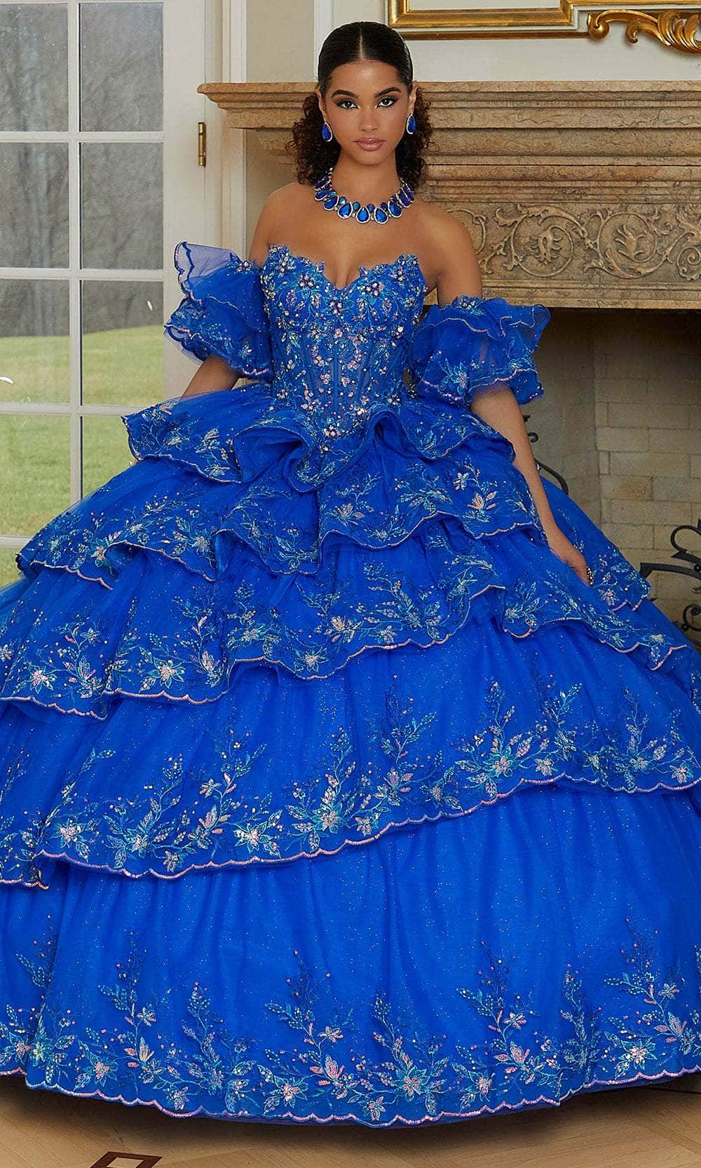 Capture the spotlight in this remarkable Vizcaya by Mori Lee 89476 gown. Designed to amplify your regal allure, this strapless gown is decorated with glistening sequins, crystal beads, and embroidery. Showcases are a lovely sweetheart neckline, sheer corset boning bodice, and an open back with an adjustable lace-up tie design. The skirt showcases a voluminous ballgown silhouette that beautifully streams down to a court train, enhanced by the dramatic flair of multi-tiered and scalloped edging. It also includes detachable off-shoulder sleeves and a matching stole, allowing you to customize your appearance. Create lasting memories in this Vizcaya by Mori Lee 89476 masterpiece. Models are wearing Lilac, and Bright Royal colors.