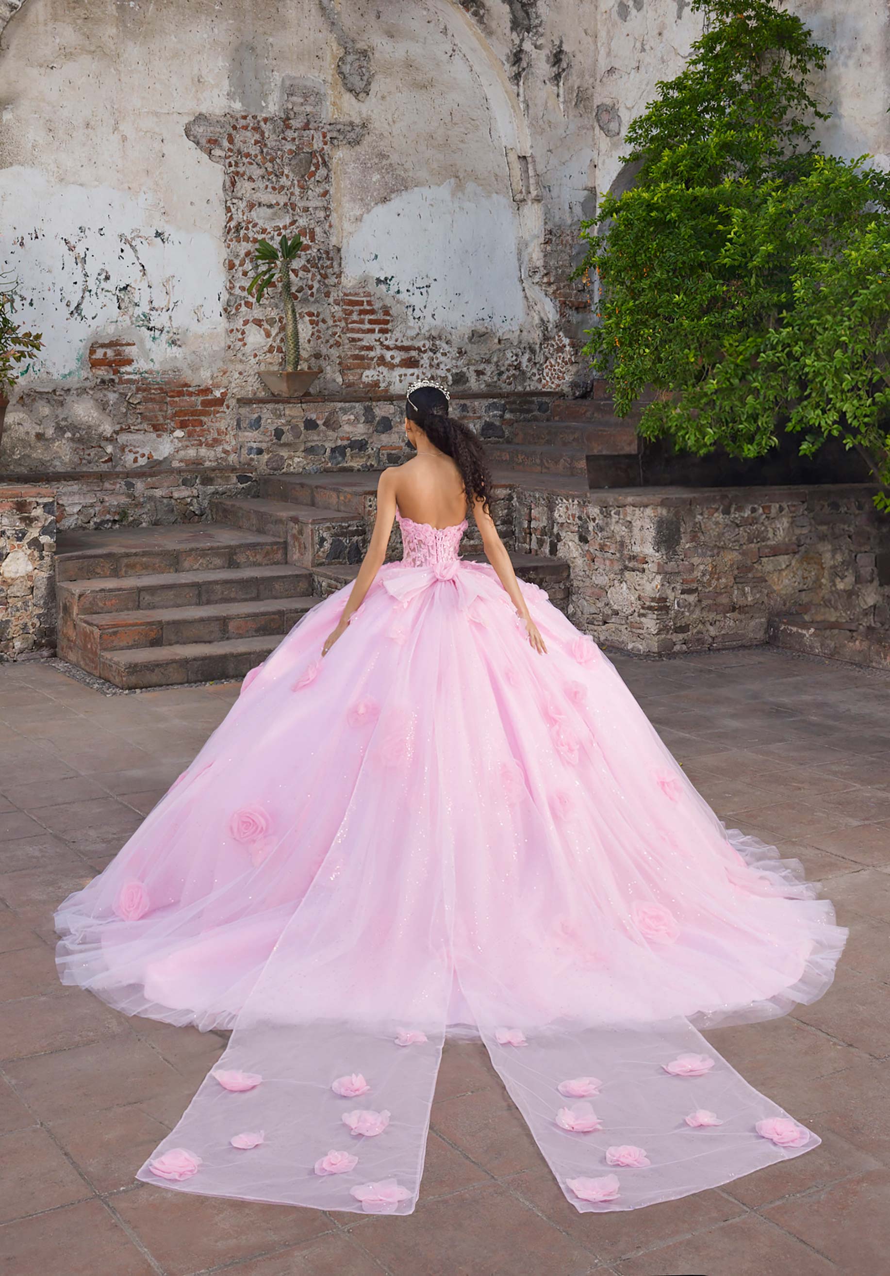 A vision of timeless charm, Vizcaya by Mori Lee 89562 captures romance with exquisite details. The notched bodice with defined boning and sweetheart neckline frames the upper silhouette, while a sheer midriff introduces a touch of modern allure. 3D floral accents, beaded and embroidery enhance the ballgown silhouette, creating graceful movement with every step. A detachable halter neck tie provides versatility, complemented by a Basque waistline and corset back. The Vizcaya by Mori Lee 89562 style becomes the perfect choice for cherished celebrations. Models are wearing Pucker Up Pink/Light Pink, and Scarlet colors.