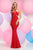 This stunning outfit is styled with soft jersey and tulle materials, showcases a high halter neckline with cut-in details and an alluring racerback with asymmetrical keyhole openings. Features unique side cutouts at the midriff and a peek a boo keyhole on the bust. The dress finishes with a floor-length sheath skirt with subtle flared end. Model represents the dress in Red color.